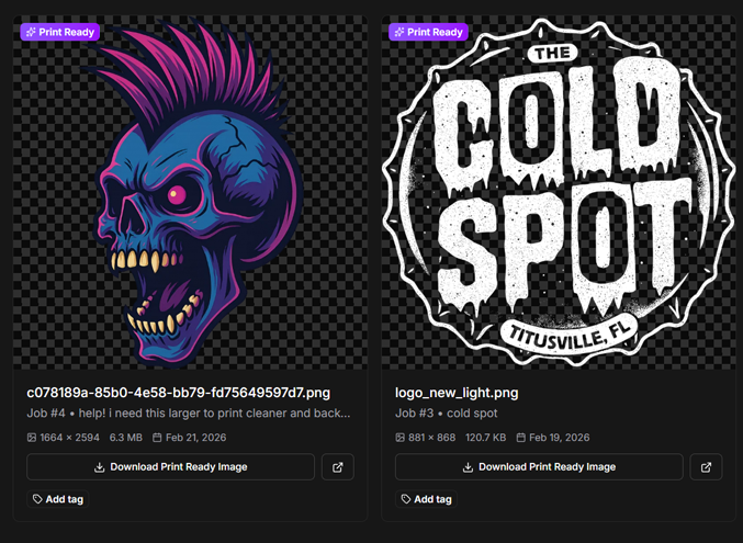 Our experts handle everything—knockouts, halftones, upscaling, edge cleanup. Chat with us if you need anything specific.